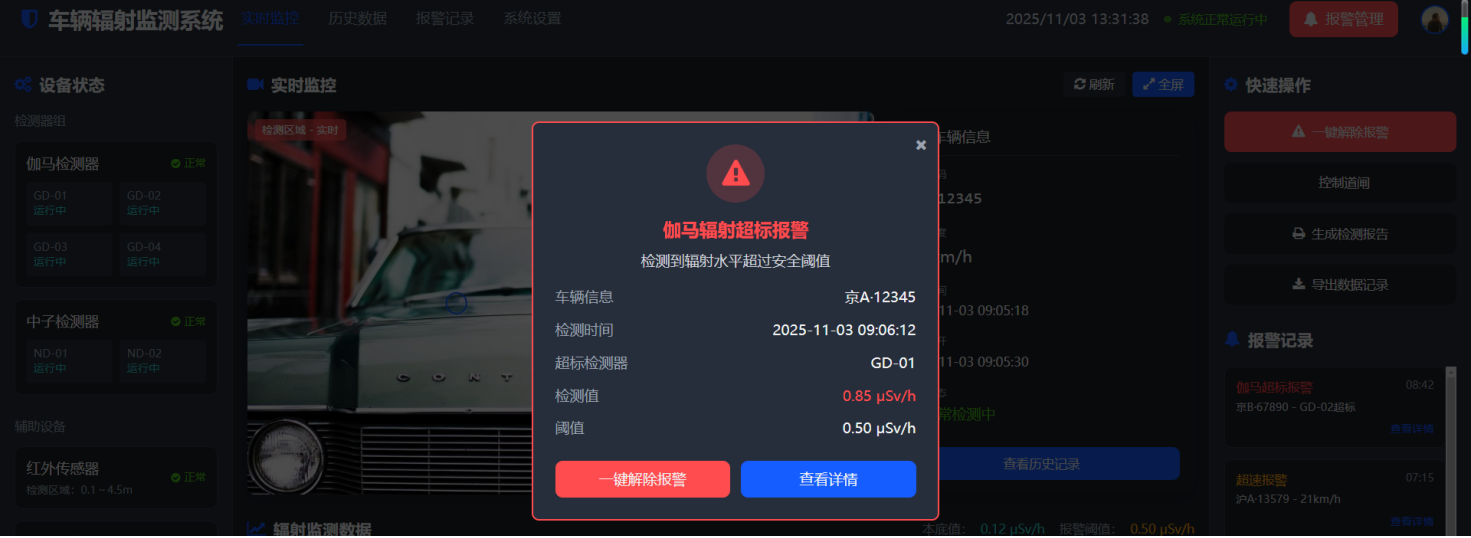 设备能接入海关管理网,数据可接入“海关总署核辐射探测应用物流监测子系统” |